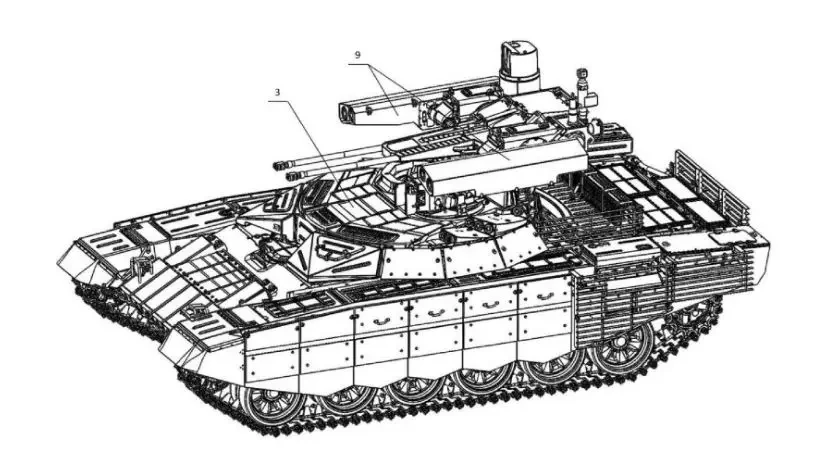 3 — боевой модуль. 9 — пусковые установки ПТУР с защитными кожухами