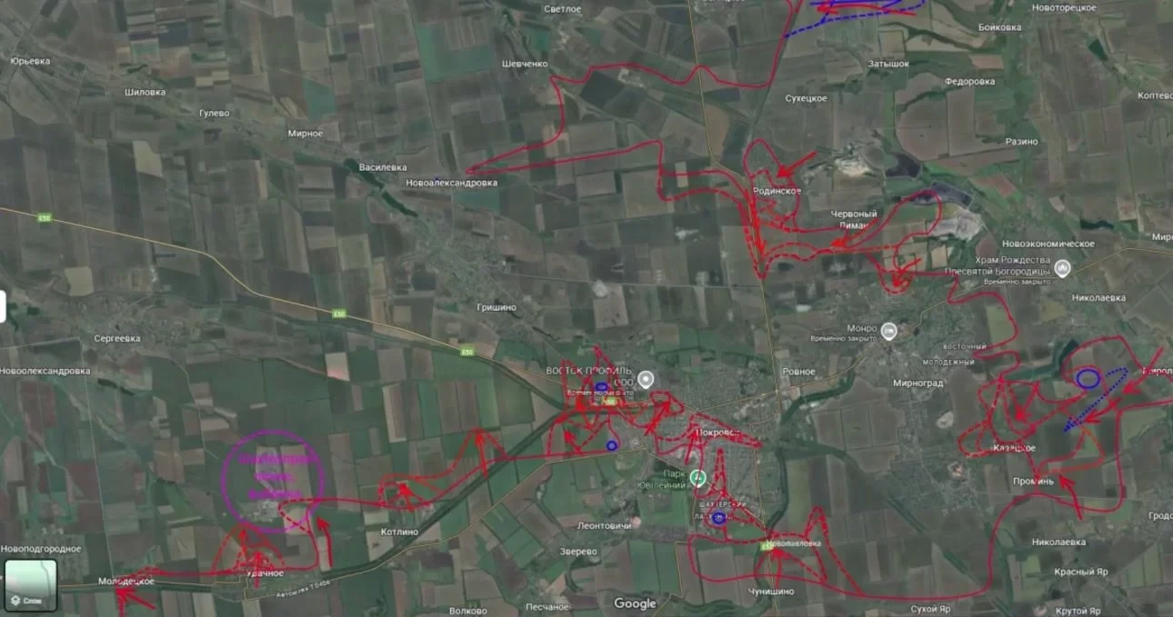 Этому способствует удар российских частей со стороны ранее освобожденного района Рыбного, который окончательно ставит гарнизон ВСУ в южной части Покровска в оперативное окружение.