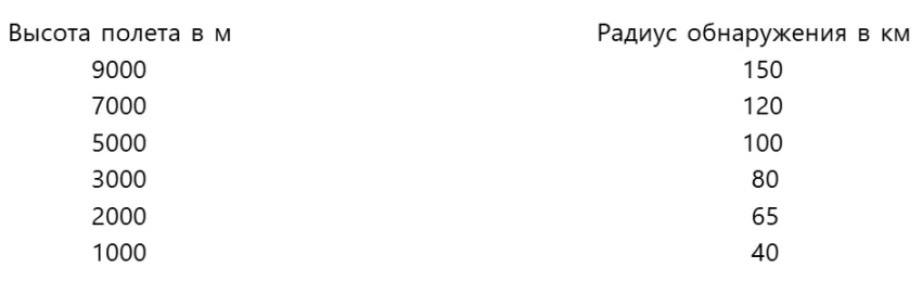 Такое расположение средств обнаружения позволяло обнаруживать противника в воздухе на следующих радиусах: