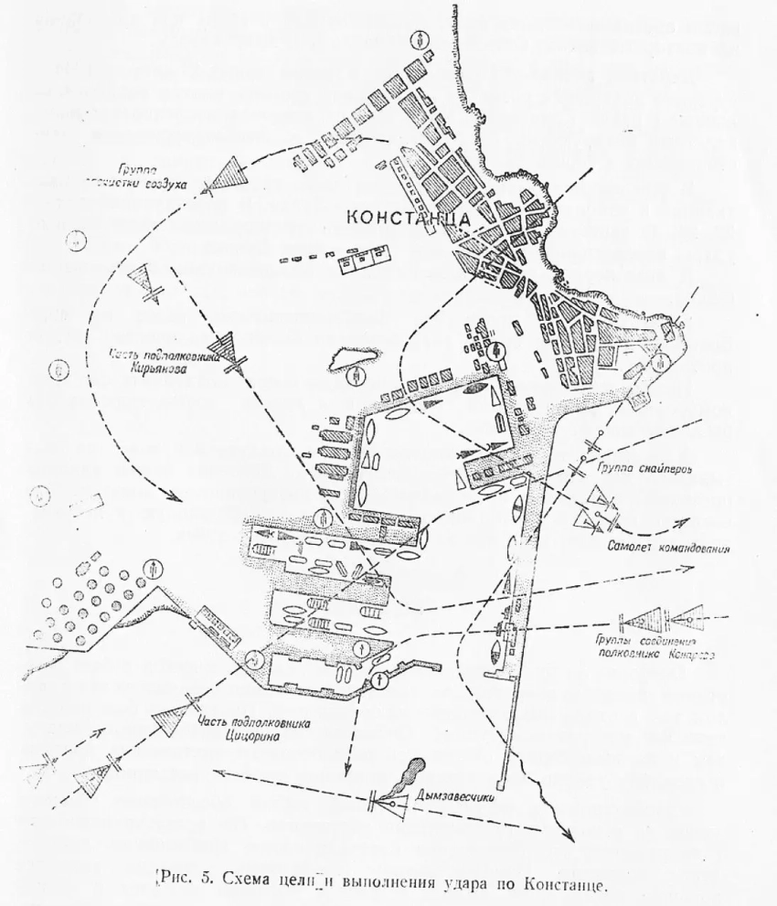 В результате продолжительной разведки к началу операции, т. е. к 10 августа 1944 г., о военно-морской базе Констанца имелись довольно точные и достоверные сведения.