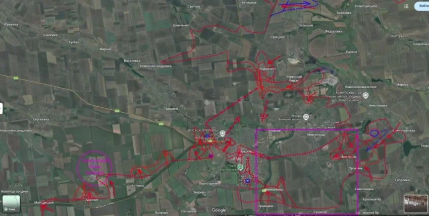 Одновременно начался штурм соседнего города Мирноград. Российские подразделения вошли на южные окраины со стороны Казацкого. По оценке Подоляки, первоочередная задача - срезать выступ обороны ВСУ, чтобы уменьшить линию фронта и улучшить логистику, после чего возможен рывок навстречу частям, наступающим со стороны Родинского, с целью полного отсечения Покровско-Мирноградской агломерации.