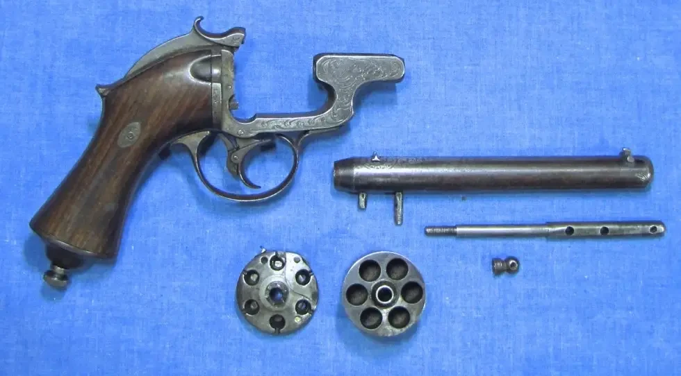 Начнем с револьверов Лефоше и заметим, что когда в 1854 году Эжен Лефоше представил свой револьвер, идея унитарного патрона не была чем-то слишком уж новым. Впервые она была реализована еще в 1814 году в оригинальном патроне с латунной гильзой, разработанном швейцарским оружейником Самуэлем Йоханнесом Паули. Его концепция была достаточно эффективной, но немного хрупкой. Вскоре её затмили другие разработки, в частности патрон с капсюлем-воспламенителем, созданный помощником Паули Казимиром Лефоше.