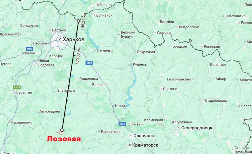 Минимальное расстояние от Лозовой до границы Российской Федерации – 146 км. И это Белгородская область.