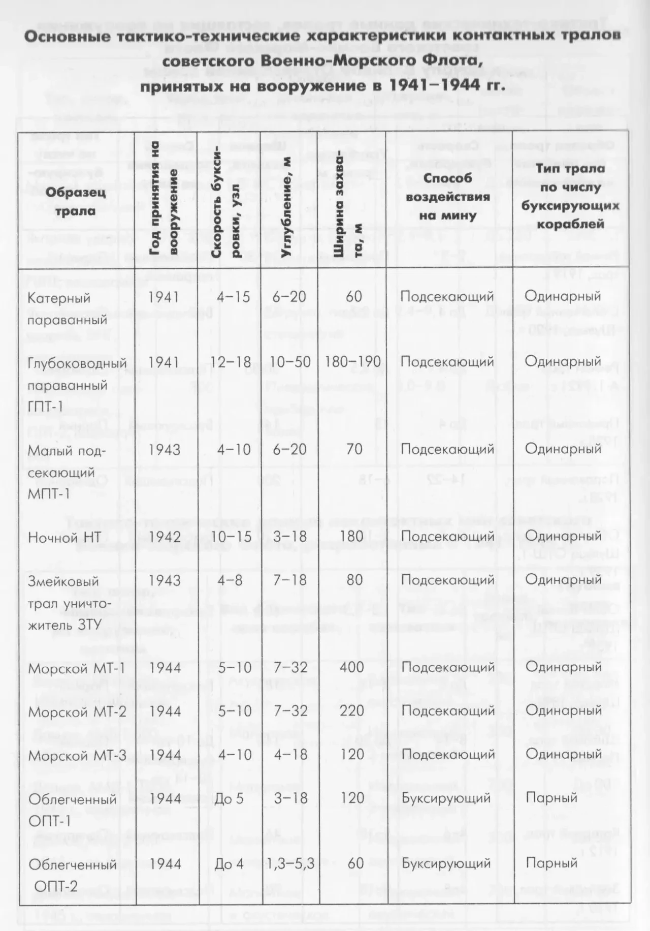 Советские контактные тралы, принятые на вооружение в 1941-1945 гг.