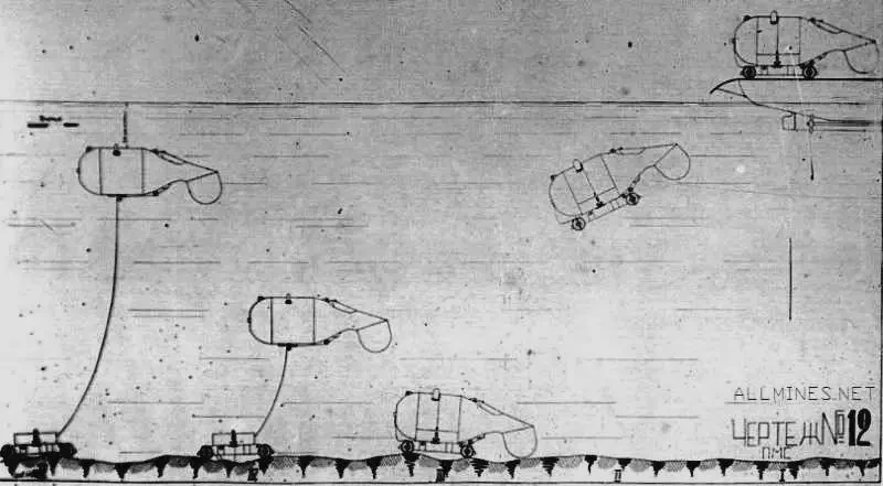 Схема постановки мины Р-1. Аналогично устанавливаются якорные мины других типов