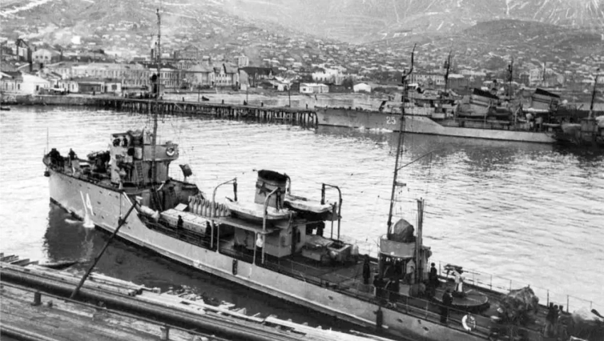 Тральщик Т-404 типа «Фугас» в Новороссийске, 1942 г.