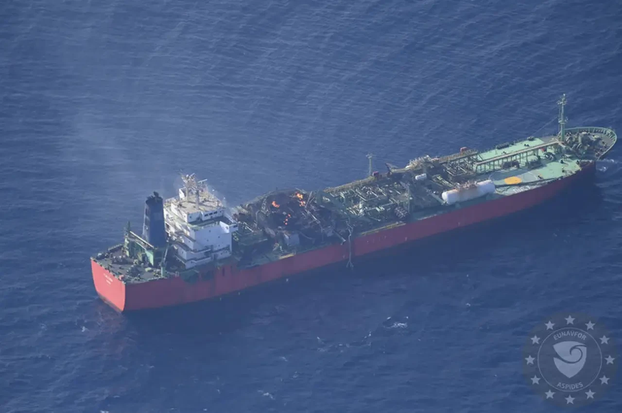 Подбитый танкер с СПГ продолжает гореть и дрейфовать у берегов Йемена