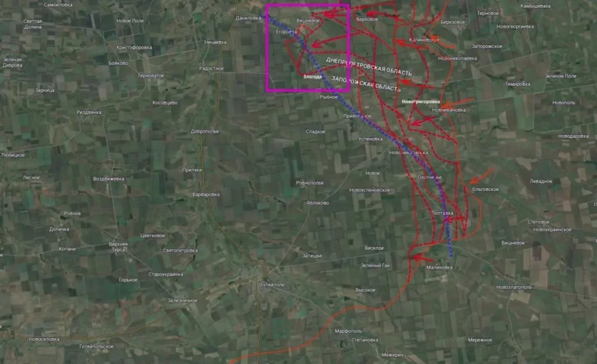 Развивая наступление, войска движутся к стратегически важной трассе, идущей от Покровского на Гуляйполе. Уже сегодня идут бои за Егоровку, которая частично взята под контроль. Противник также зажат в клещи в районе Вишневого.