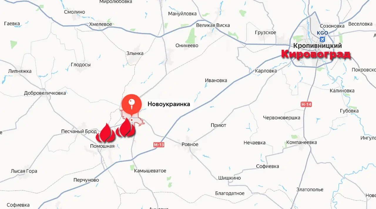 В ночь на 24 октября Вооружённые силы России нанесли удары по объектам используемой в военных целях инфраструктуры противника на ряде территорий. Несколько групп «Гераней» атаковали объекты в районе города Новоукраинка и железнодорожной станции Помошная в Кировоградской области. Это правобережная часть Украины.