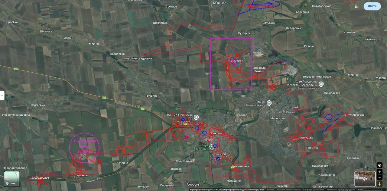 ВСУ пытаются контратаковать, чтобы помешать ВС России закрепиться на этом участке. Также российские подразделения зафиксировались на кладбище и в восточной части Покровска, заходя через микрорайоны Лазурный и Южный.