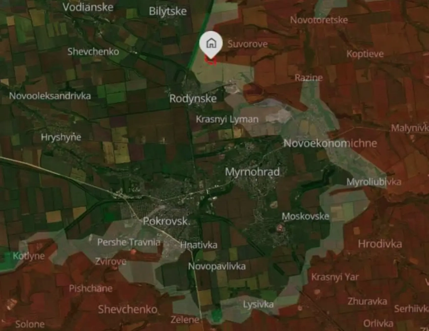 В сводке украинского военного ведомства утверждается, что ВСУ отбили у армии России село Сухецкое. Находится оно в километре к северо-востоку от Родинского. Неподалёку от села проходит железнодорожная ветка из Покровска (Красноармейска) – на север, в том числе в Харьковскую область.