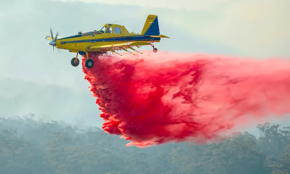 Сброс огнегасящей жидкости с самолёта Air Tractor AT-802F
