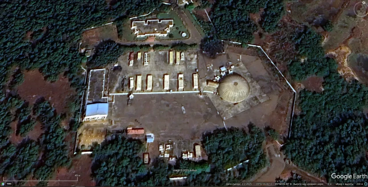 Спутниковый снимок Google Earth: РЛС EL/M-2080 к северу от города Колар