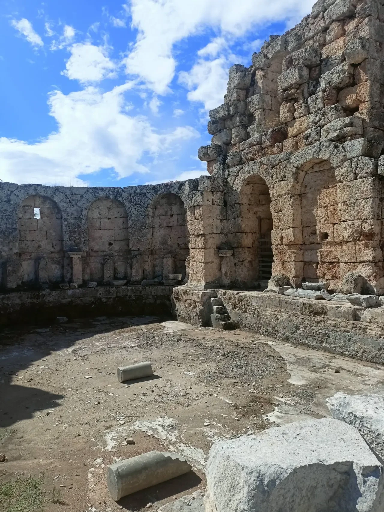 Сохранились и крепостные стены высотой 12 м, и Южные ворота, относящиеся к эпохе эллинизма, через них можно попасть в город, называются «Римскими воротами» (IV в.). В 92 м за ними стоят еще одни ворота, эллинистического времени (III в. до н. э.), но они были перестроены во II в. н. э. По обе стороны этих ворот высятся круглые башни. За ними имеется небольшой U-образной формы двор с нишами в стенах, в которых когда-то стояли статуи богов, императоров и, видимо, основателей города.