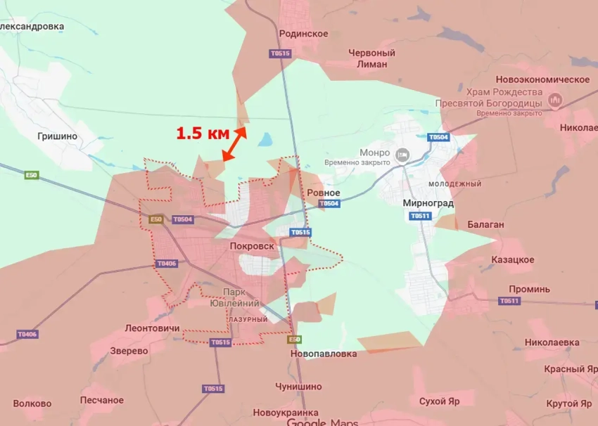 Одной из тем для обсуждения западными экспертами стала тема узкого коридора из Покровского (Красноармейского) котла. Ранее в украинском ГУР объявили, что они якобы пробили «сухопутный коридор» и теперь туда «подтягивают дополнительные силы». В Германии усомнились в правдивости этих заявлений, указав на то, что коридор и без ГУР существовал, но его узость играла и продолжает играть против покровского гарнизона ВСУ.