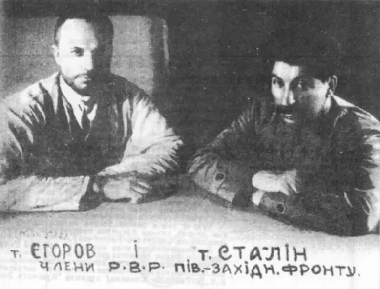 Егоров и Сталин на фотографии, сделанной близ Львова в 1920 г.