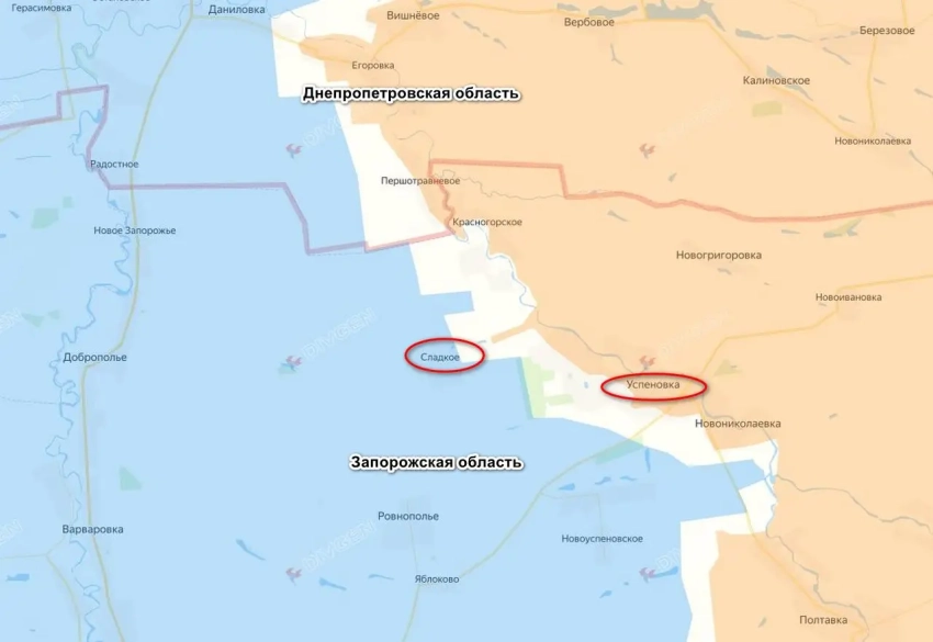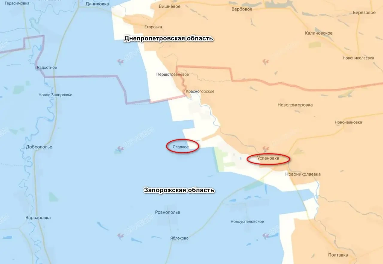 На вечер четверга, 6 ноября, российские ресурсы сообщили, что на Гуляйпольском направлении в Запорожской области российские войска, наступая на западном берегу реки Янчур, освободили Успеновку и завершают зачистку Сладкое. Площадь продвижения: около 5 км². Однако канал группировки «Восток» «Воин DV» более осторожен в высказываниях, он информирует о том, что в Успеновке противник еще присутствует на окраинах, идет их зачистка.