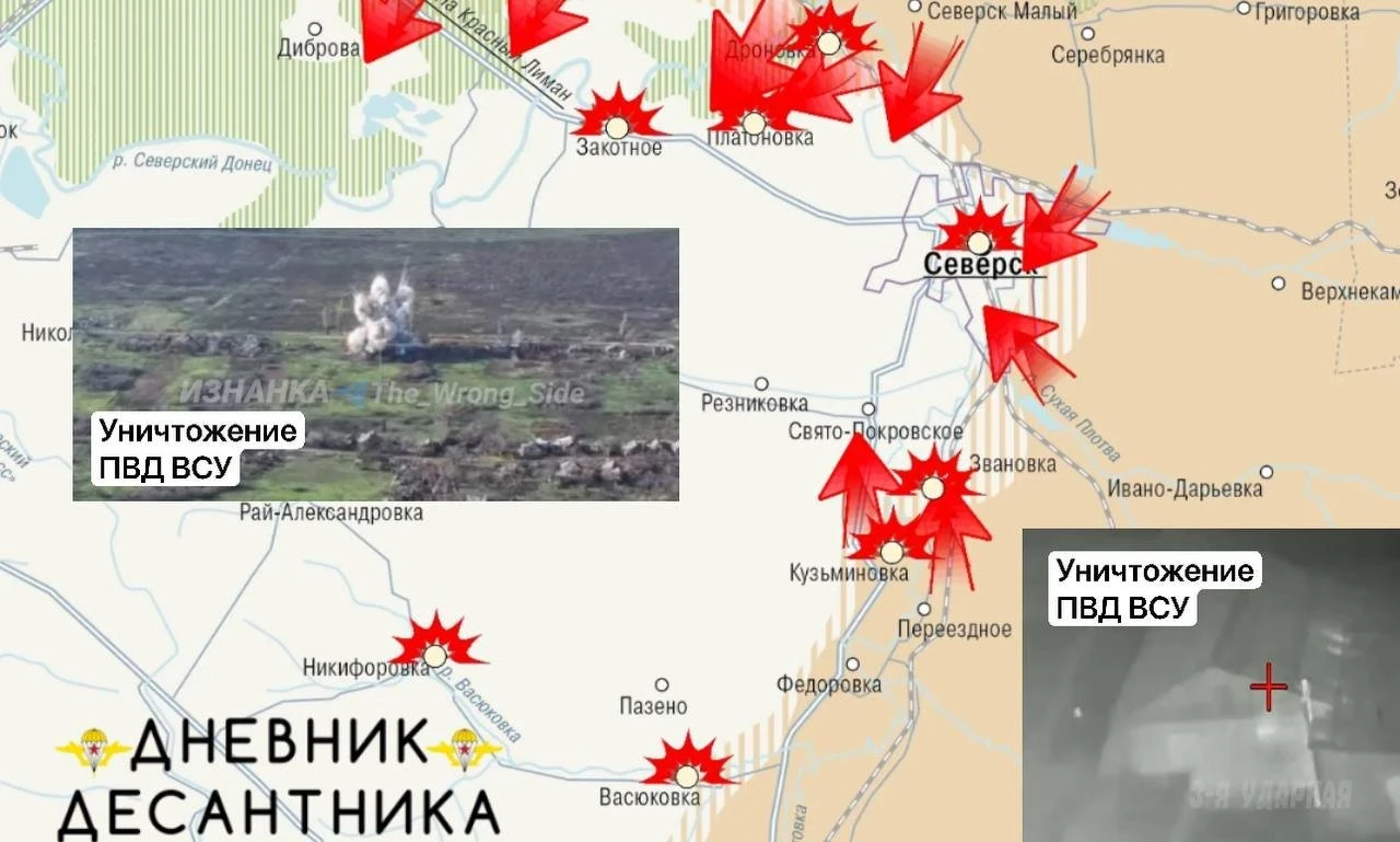 Продолжаются сражения за Ямполь (северный участок). На южном участке осталась одна трасса снабжения гарнизона ВСУ около Свято-Покровского. Тем не менее уже сейчас противнику не представляется возможным отойти от города беспрепятственно.