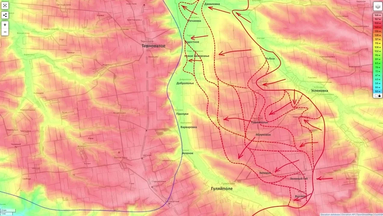 В данный момент идет работа по расширению плацдарма для соединения с частями, совершившими прорыв в районе Малой Токмачки. Главная тактическая задача - ликвидация «кармана» между этими выступами, что позволит подтянуть расчеты БПЛА и начать непосредственные городские бои в Орехове.