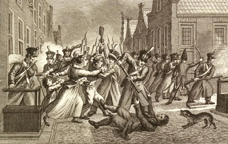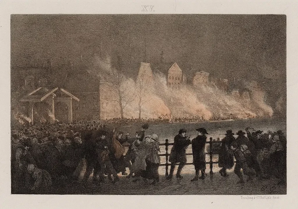 Сожжение французской таможни во время восстания в Амстердаме в ночь на 16 ноября 1813 года. Худ. Йохан Конрад Гриве-младший