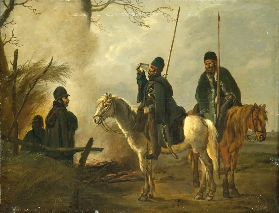Казачий пост в Голландии, 1813 год. Художник Питер Герардус ван Ос