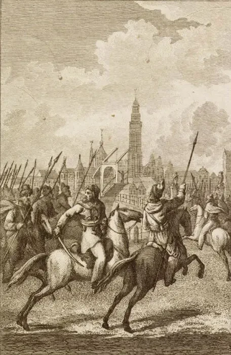 Казаки переходят в Кампен 20 ноября 1813 года. Абрахам Винкелес по рисунку Яна Виллема Пинемана