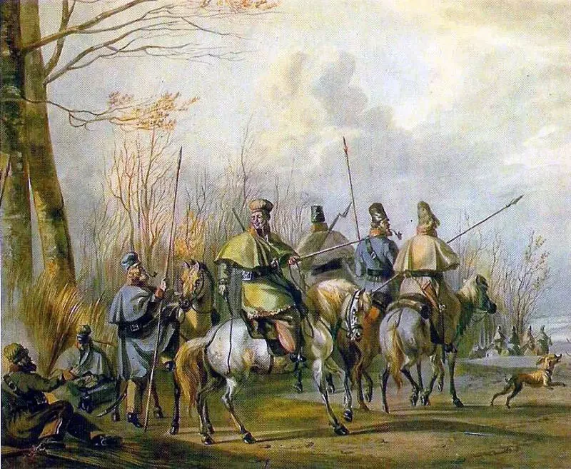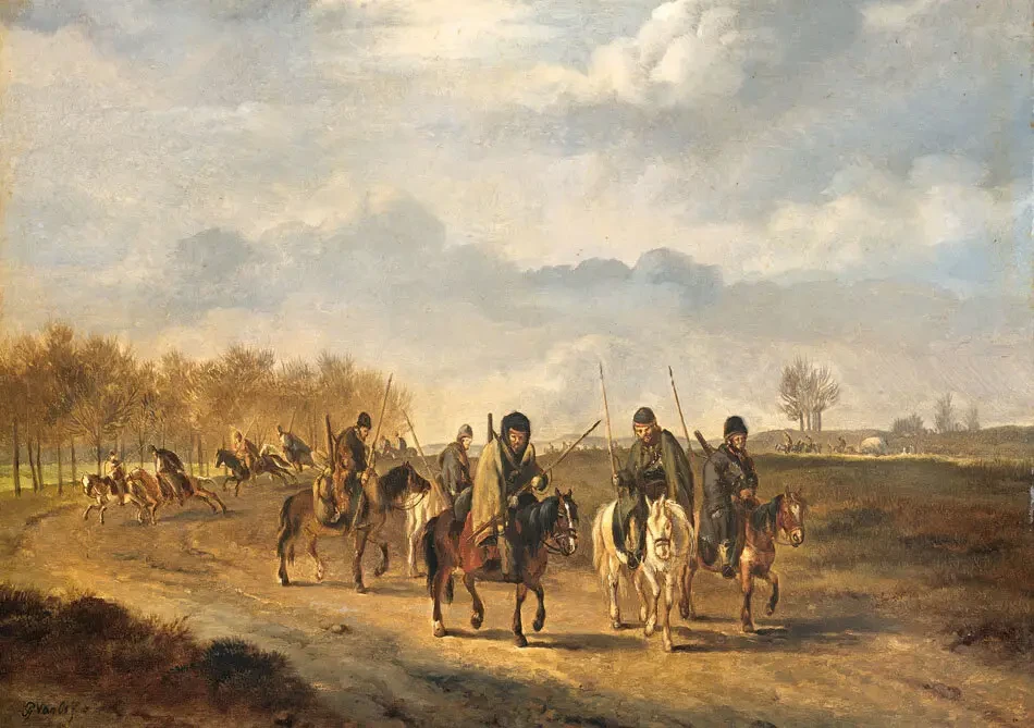 Казаки на проселочной дороге близ Бергена в Северной Голландии, 1813 год. Питер Герардус ван Ос