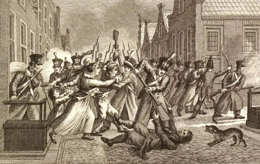 Это стало поводом к народному восстанию, к которому присоединились как оранжисты (сторонники Оранского дома), так и «патриоты». В ночь на 16 ноября восстание началось в Амстердаме. Вскоре восстали и другие голландские города – Гаага, Верден, Роттердам, Лейден и пр. Не везде восставшим сопутствовал успех. Так, повстанцы сначала заняли Верден, затем французы после упорного боя его вернули под свой контроль.