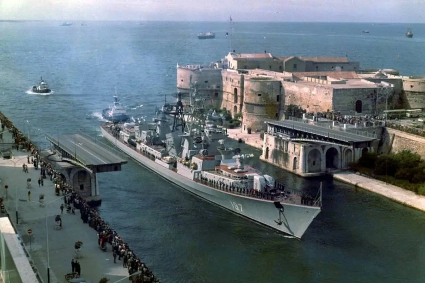 Большие противолодочные корабли 61 проекта американские моряки прозвали «поющими фрегатами» за мелодичный свист впервые применённых на кораблях газовых турбин. А ещё это был, наверное, самый красивый из кораблей всех времён и народов — стремительный силуэт с острым вздёрнутым носом, стальное кружево антенн, наклонные трубы, линейно возвышенное расположение артиллерии и зенитных ракетных установок. Доводилось даже слышать легенды о том, что корабль спроектировала женщина...