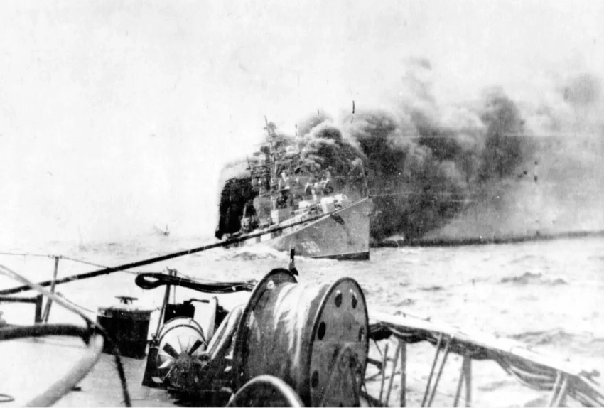К 11:00 была получена команда: «Буксировать «Отважный» к мысу Херсонес». К горящему кораблю шли три буксира, но их скорость меньше, чем у боевых кораблей, поэтому эсминец «Сознательный» завел буксирный конец на «Отважный», правда, лагом к аварийному кораблю был пришвартован БПК «Бедовый». На него передали: «Рубить концы и отходить от «Отважного»», но команду принял «Сознательный» и отрубил поданный буксирный конец... Пока конец заводили на «Бедовый», прошёл час, к месту аварии подошло спасательное судно «Бештау» с мощной машиной и специальной лебёдкой для буксировки, но тянуть за ноздрю «Отважный» поручили значительно хуже к этому приспособленному БПК...