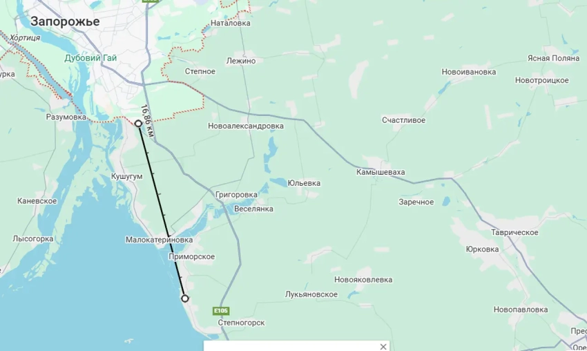 С выходом российских войск севернее Степногорска и в центр соседнего Приморского расстояние до южной окраины Запорожья сократилось до минимума с начала СВО и на данный момент составляет около 16,8 км.