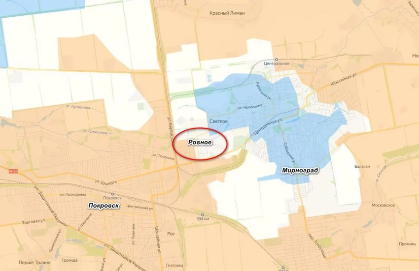 Российские войска продолжают сжимать кольцо в Мирнограде, временно подконтрольная ВСУ территория постепенно уменьшается. Как заявило Минобороны, окончательно освобождено и зачищено село Ровное между Покровском и Мирноградом.