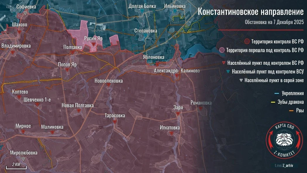 ВС РФ окружают Северск с двух сторон, карта боевых действий в зоне СВО на утро 08.12.2025