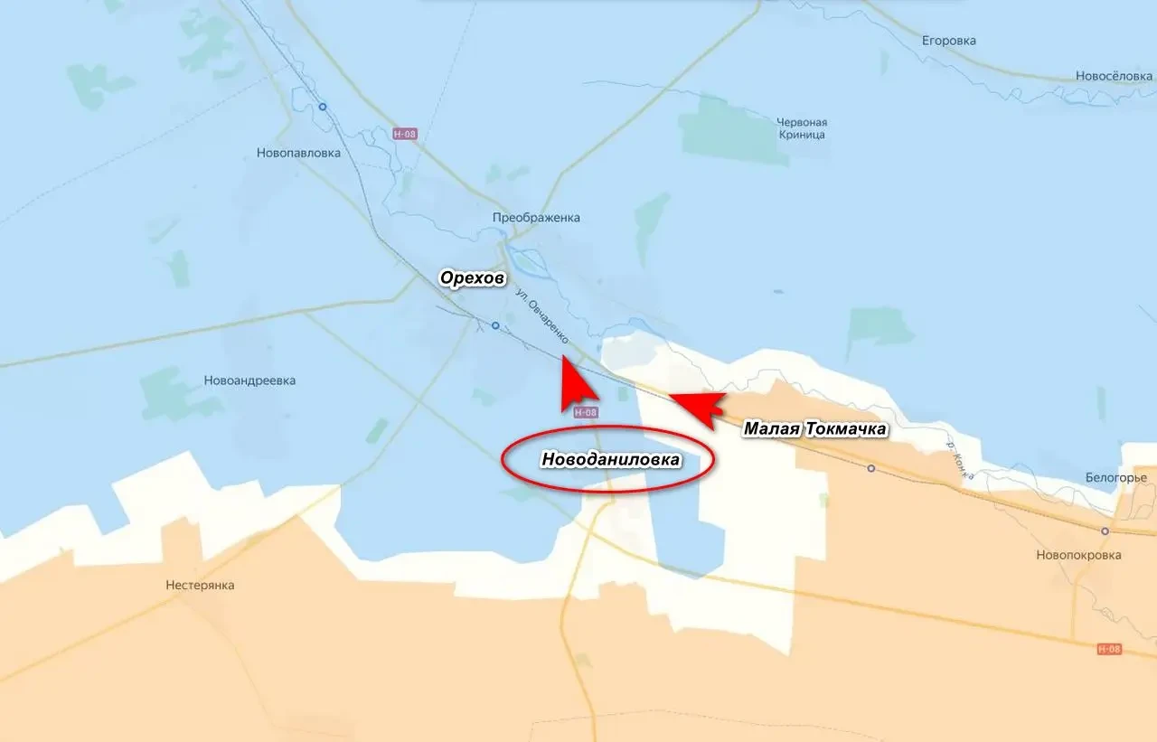 Хорошие новости пришли из Запорожской области, штурмовые подразделения группировки войск «Днепр» освободили и зачистили Новоданиловку, расположенную к югу от Орехова и к западу от Малой Токмачки. Фактически Новоданиловка является спутником Орехова, там между окраинами села и города чуть больше километра, а улица Хрусталькова Новоданиловки переходит в улицу Привокзальную Орехова.