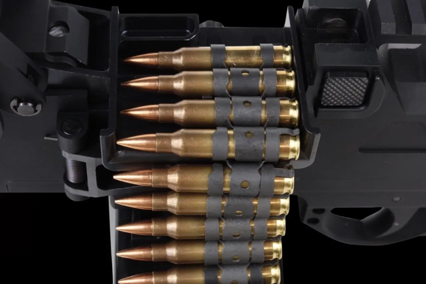 Пулемёт использует стандартные натовские рассыпные ленты. Подача боеприпасов осуществляется слева. Использованные звенья выбрасываются через собственное окно над окном выброса гильз. Ленты различной ёмкости предлагается переносить в мягком коробе, закрепляющемся под ствольной коробкой.
