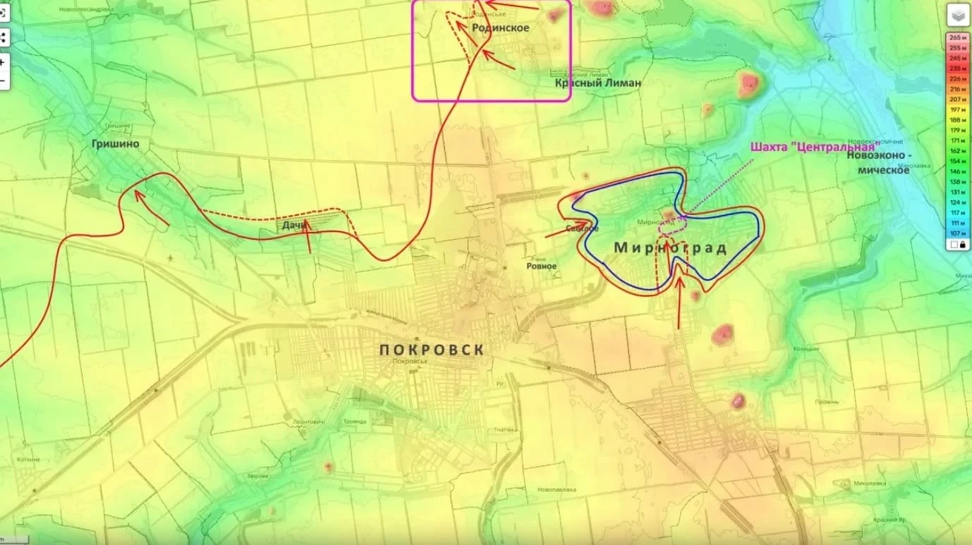 Кроме того, военный блогер раскрыл последние новости с Мирноградского направления. Выяснилось, что продвигающиеся в Мирнограде российские подразделения вышли с двух сторон к шахте «Центральная», являющейся ключевым узлом обороны ВСУ в городе, сообщил Подоляка.