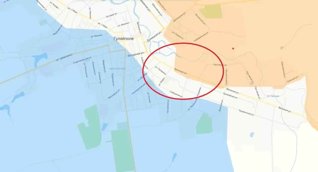 Российским войскам удалось проломить оборону противника в центральной части города Гуляйполе Запорожской области. ВС РФ форсировали реку Гайчур и заняли улицу Песчаная. В настоящее время продолжается штурм позиций ВСУ на улицах Мира и Большая (ул. 1905 года).