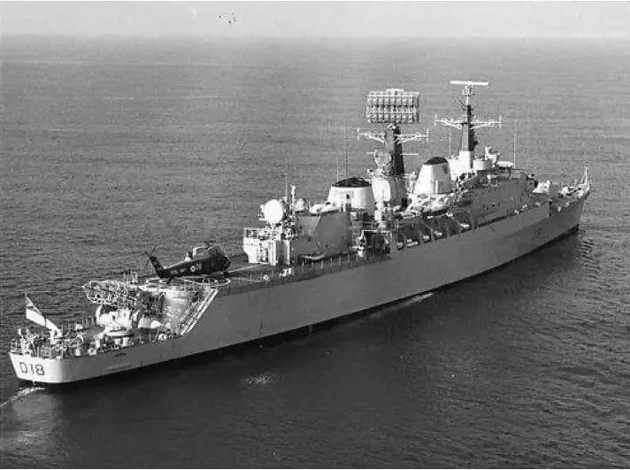 Эсминцы были представлены единственным представителем типа 82 — «Бристолем», и десятью кораблями типа 42 — «Шеффилд», «Ковентри», «Бирмингем», «Ньюкасл», «Глазго», «Эксетер», «Саутгемптон», «Ливерпуль», «Кардифф» и «Манчестер». Плюс — три «Графства»: «Антрим», «Гланморган» и «Файф». Тип 82 должны были стать кораблями сопровождения авианосцев типа CVA-1, но строительство авианосцев отменили, так что построить смогли только один «Бристоль». Корабль был экспериментальным: на нём отрабатывали оружие, которое потом встанет на эсминцы типа 42 и авианосцы типа «Инвинсибл» — зенитные ракеты «Си Дарт», противолодочные ракето-торпеды «Икара» (не в честь героя греческих мифов, а в честь слова австралийских аборигенов, обозначающего «бросок палки»), 4,5-дюймовую пушку Мk 8 и прочие перспективные нововведения, зато не предусмотрели базирования вертолёта (он же должен был авианосцы сопровождать, зачем ему?). В принципе, единственный в своём роде корабль, да ещё и созданный под конкретную задачу, которая резко стала неактуальной, был для Королевского флота жутким геморроем в плане обслуживания и считался бесполезной игрушкой.