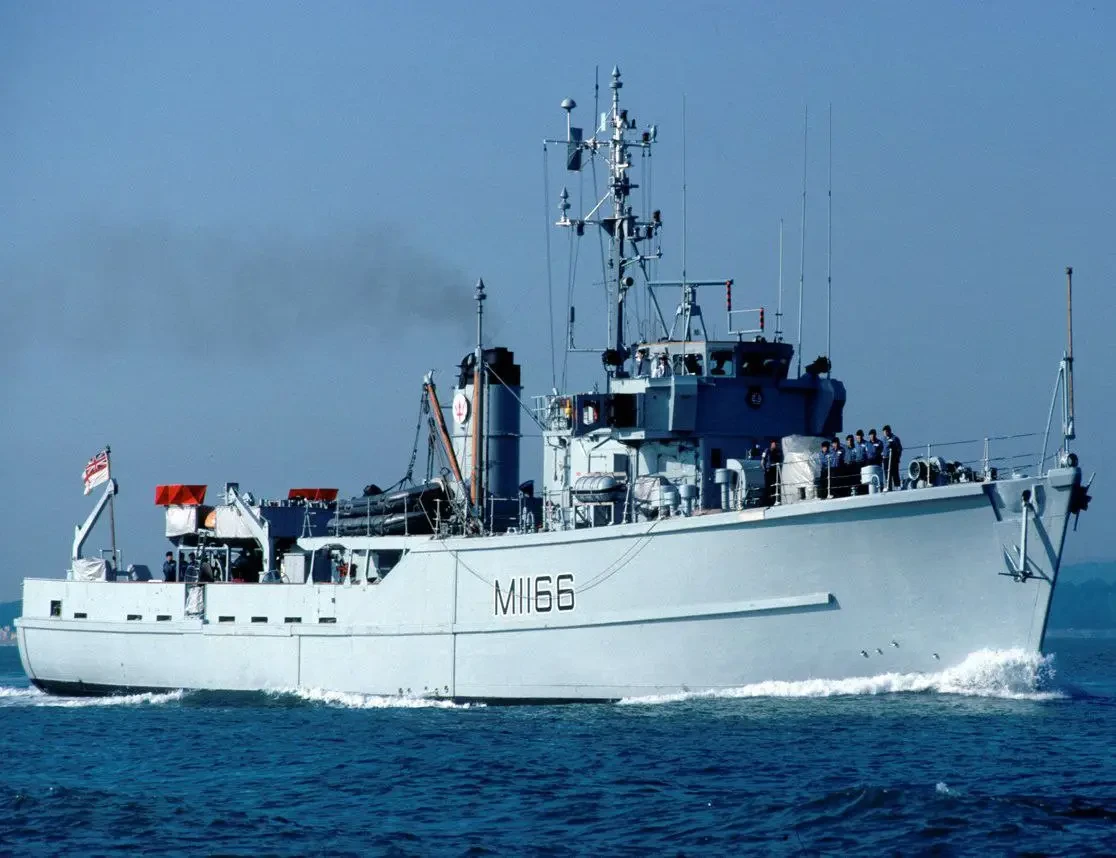 Противоминную оборону обеспечивали 13 тральщиков класса «Хант»: эти корабли впервые получили корпус из стеклопластика. Их предшественники, тральщики класса «Тон», были разработаны на опыте Второй мировой войны и также ещё находились на вооружении Королевского флота, хотя для перехода на Фолкленды эти корабли были признаны негодными, их экипажи посадили на мобилизованные для этого рыболовецкие траулеры «Саффолк Харвестер» и «Саффолк Монарх», ставшие тральщиками «Вентурер» и «Сент-Дэвид». Впрочем, самыми многочисленными тральщиками Королевского флота были корабли класса «Хэм», их с 1954 по 1959 год было построено 93 корпуса.