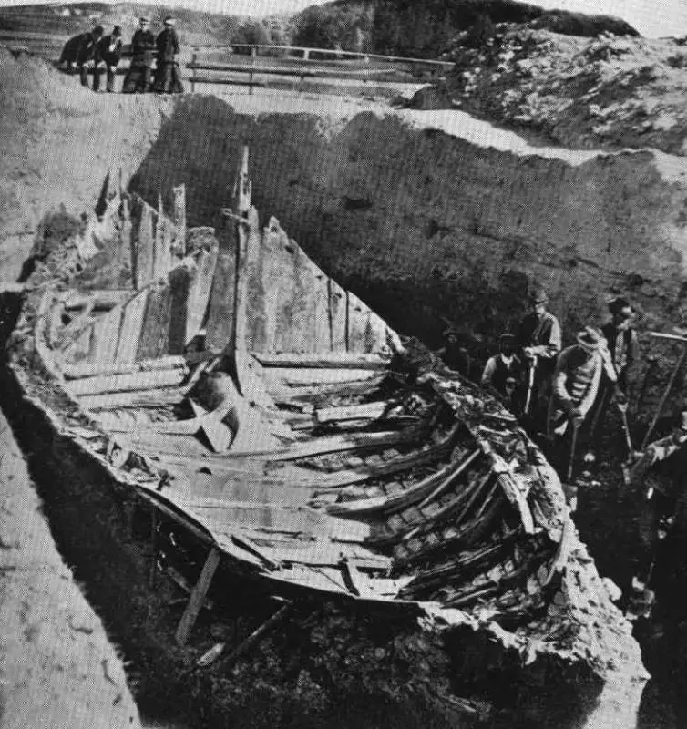 Человеку, которого похоронили на борту корабля, было по крайней мере за 50, причем рост его был около 185 см. А еще он страдал артритом и, скорее всего, просто не мог ходить. Кем он был? Скорее всего, вождем или местным королем в Вестфолде, который пользовался поддержкой других местных вождей. Драгоценностей в погребении археологи не нашли, их, видимо, давно унесли грабители могил, но все равно там нашлось немало интересного, включая игровые доски, посуду, палатки, три лодки поменьше, двенадцать лошадей, восемь собак и двух павлинов. Оружие и драгоценности были унесены еще в конце 900-х годов.