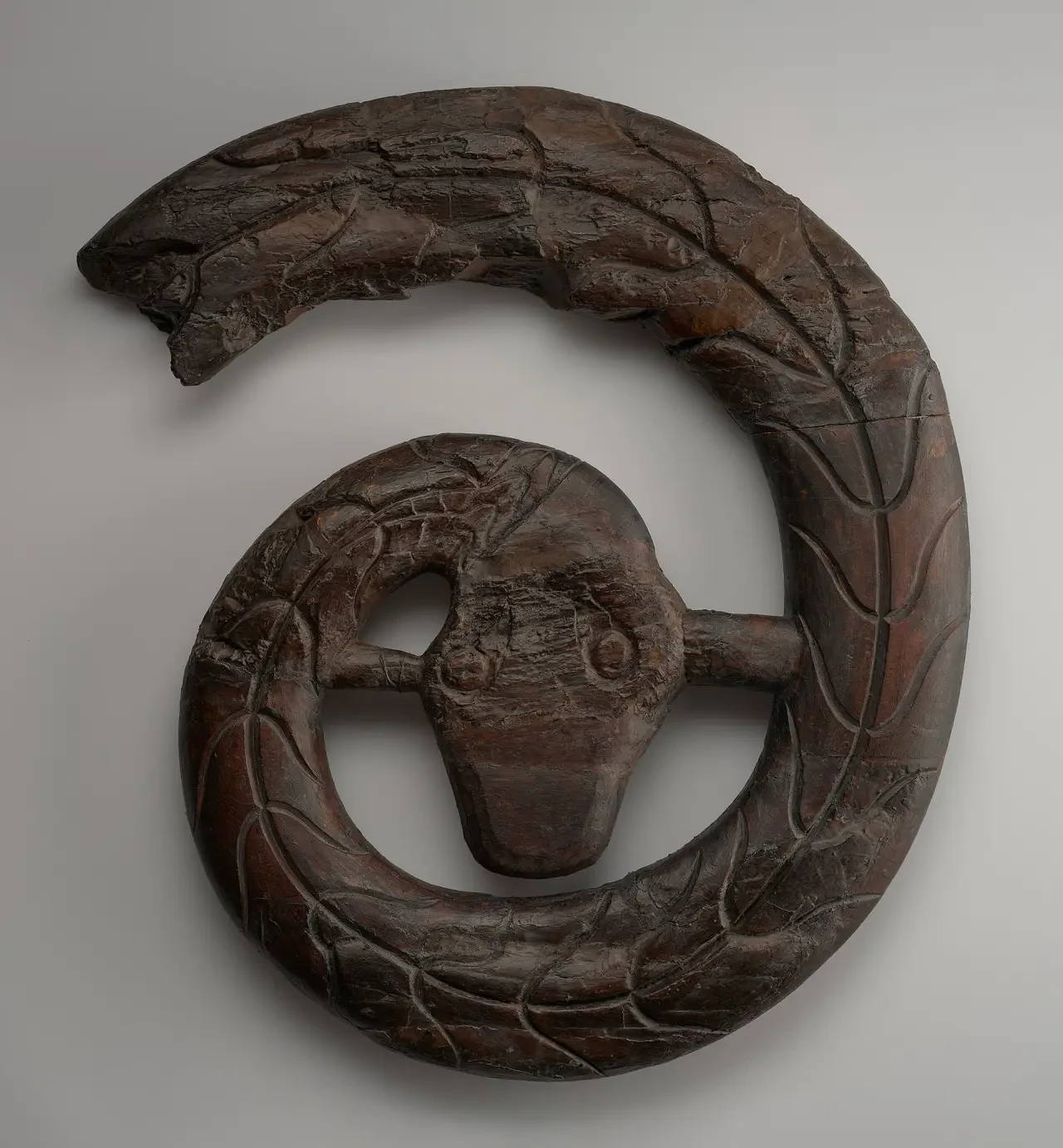 Носовая фигура «Корабля из Осеберга». До недавнего времени не демонстрировалась из-за своего хрупкого состояния. Музей истории культуры университета Осло