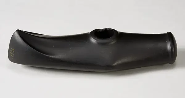 Этот прекрасный каменный топор из базальта был обнаружен в конце 1700-х годов в Фискумваннете в коммуне Эвре Эйкер. Фермер, что ловил там рыбу, использовал его в качестве грузила на сети. Топор был отправлен в университетский музей в 1853 году, и с тех пор он признан самым красивым изделием эпохи среднего неолита, то есть сделан он был около 4500 лет назад. Не верится, что топор потерялся случайно – он явно с определенной целью был брошен в воду, где фермер его и нашел. Причем, топор на удивление хорошо сохранился. Длина топора 18,6 см. Музей истории культуры университета в Осло