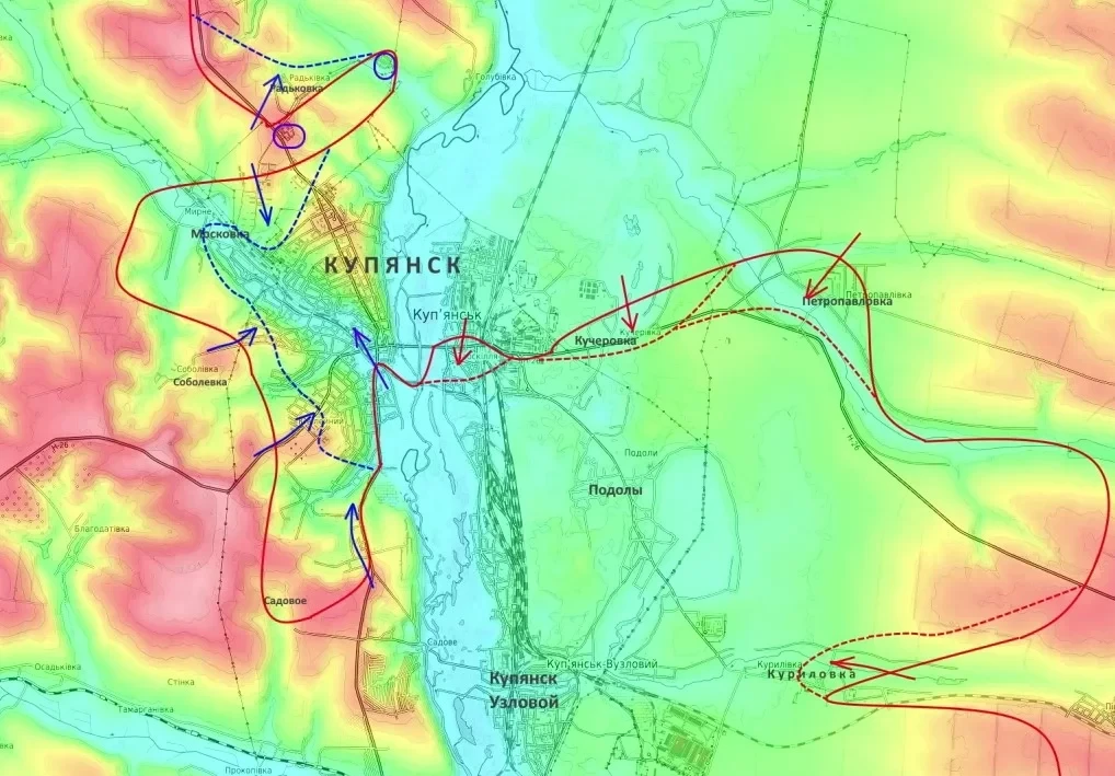 Вторая неделя здесь ознаменована непрекращающимися тяжелыми боями. Под мощным давлением численно превосходящего противника российские подразделения были вынуждены тактически отойти из населенного пункта Московка. Кроме того, зафиксированы попытки вклинивания украинских формирований на северо-западных и юго-западных окраинах Купянска.