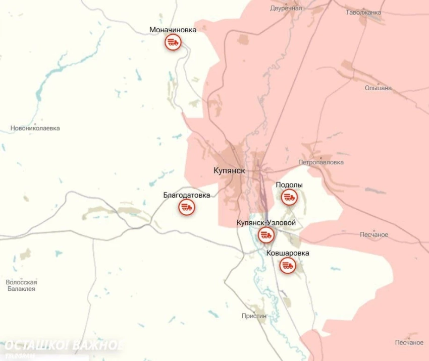 На Купянском фронте продолжаются тяжелейшие бои за город. Противник пытается вклиниться с юго-западного и северо-западного направлений. По данным с мест, ВС РФ подтянули в Купянск резервы и намерены контратаковать в районе Радьковки, чтобы изолировать передовые подразделения противника на территории Купянска и купировать контрудар врага на этом направлении.