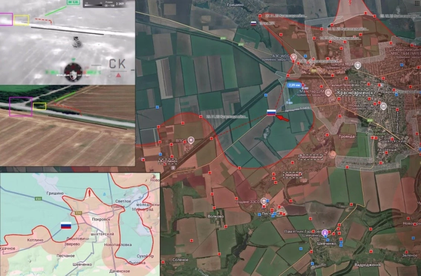 На Красноармейском направлении ВС РФ продолжают продвигаться от Удачного и Котлино в сторону Сергеевки. Наши бойцы бьются за Гришино, почти половина села под нашим контролем. С мест сообщают, что ВС РФ после ожесточенного сражения удалось выбить противника из Родинского, после чего они также начали продвижение к Гришино. В Димитрове остаётся очаговое сопротивление противника, идёт зачистка остатков города. Наши бойцы взломали оборону противника в Софиевке и продолжают наступление в Торецком.