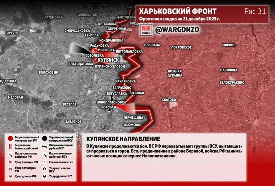 3,5 тысячи бойцов ВСУ окружены под Купянском: новая карта боевых действий в зоне СВО на 21 декабря