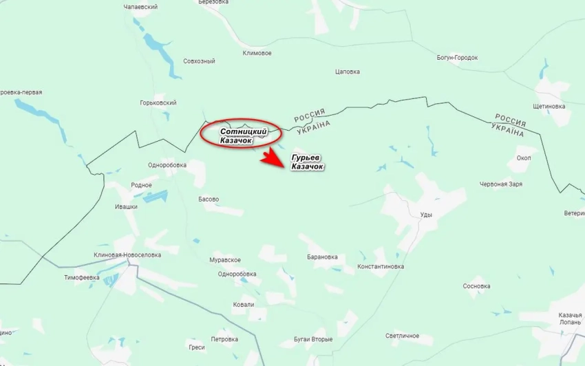 Российские войска продолжают наступать на севере Украины, накануне успех был в Сумской области, сегодня в Харьковской. Как сообщают российские ресурсы, под наш контроль перешло село Сотницкий Казачок, расположенное практически на границе.