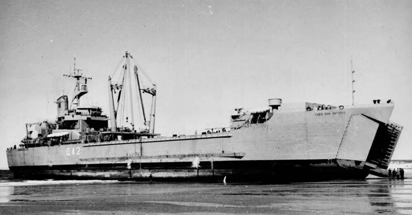 28 марта 1982 года «оперативное соединение 20», разбитое на две оперативные группы: FT-40 и FT-20, вышло из «Пуэрто Бельграно» — главной базы аргентинских ВМС. Соединение двигалось со скоростью 14 узлов в круговом ордере — защищая «мою прелесть», танкодесантный корабль «Кабо Сан-Антонио» с десантом на борту. В открытом море к армаде присоединился ледокол «Альмиранте Ирисар». Вскоре усилился юго-западный ветер, и FT-40 была вынуждена снизить скорость до 6 узлов. В общем, паршивая Фолклендская погода не дала произвести операцию вовремя: высадку смогли начать только 2 апреля. Авиаразведку выполняли самолёты Грумман S-2 «Тракер» с авианосца «25 мая».
