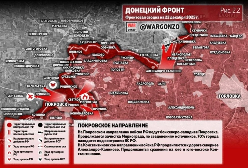 Карта боевых действий на Украине. Ситуация в зоне СВО на 22.12.2025