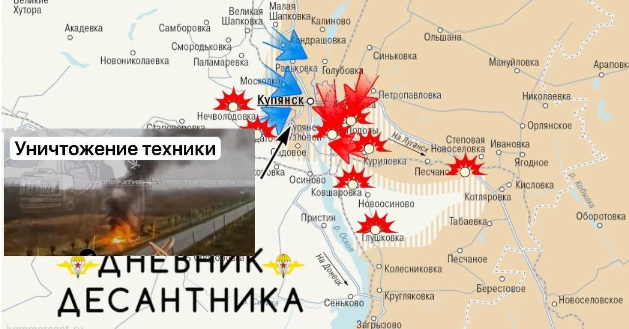 При этом украинские войска несут колоссальные потери в стремлении установить контроль над небольшой частью недавно освобождённого российской армией Купянска.